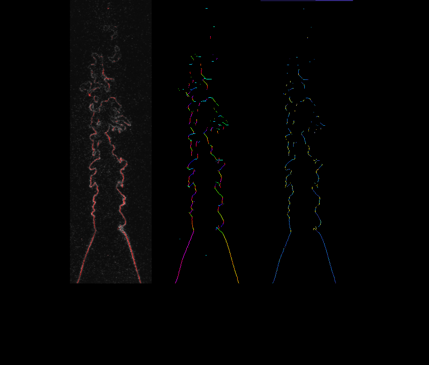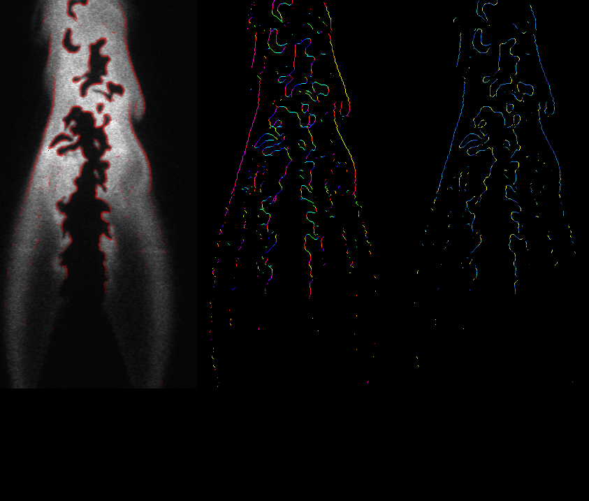 Another approach that utilizes complex-valued shearlets and that can be applied to the detection and analysis of both edges and ridges was only recently developed by Reisenhofer and King. In collaboration with the Institute of Thermodynamics at the University of Bremen, this algorithm was already successfully applied to the detection and analysis of flame fronts in recordings of combustion processes [RKK].